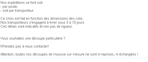 Pour les couchages d’appoint, il s’agit d’une mousse mi-ferme. Cette découpe de mousse permet de réaliser les banquettes marocaines, c’est une mousse très ferme.
